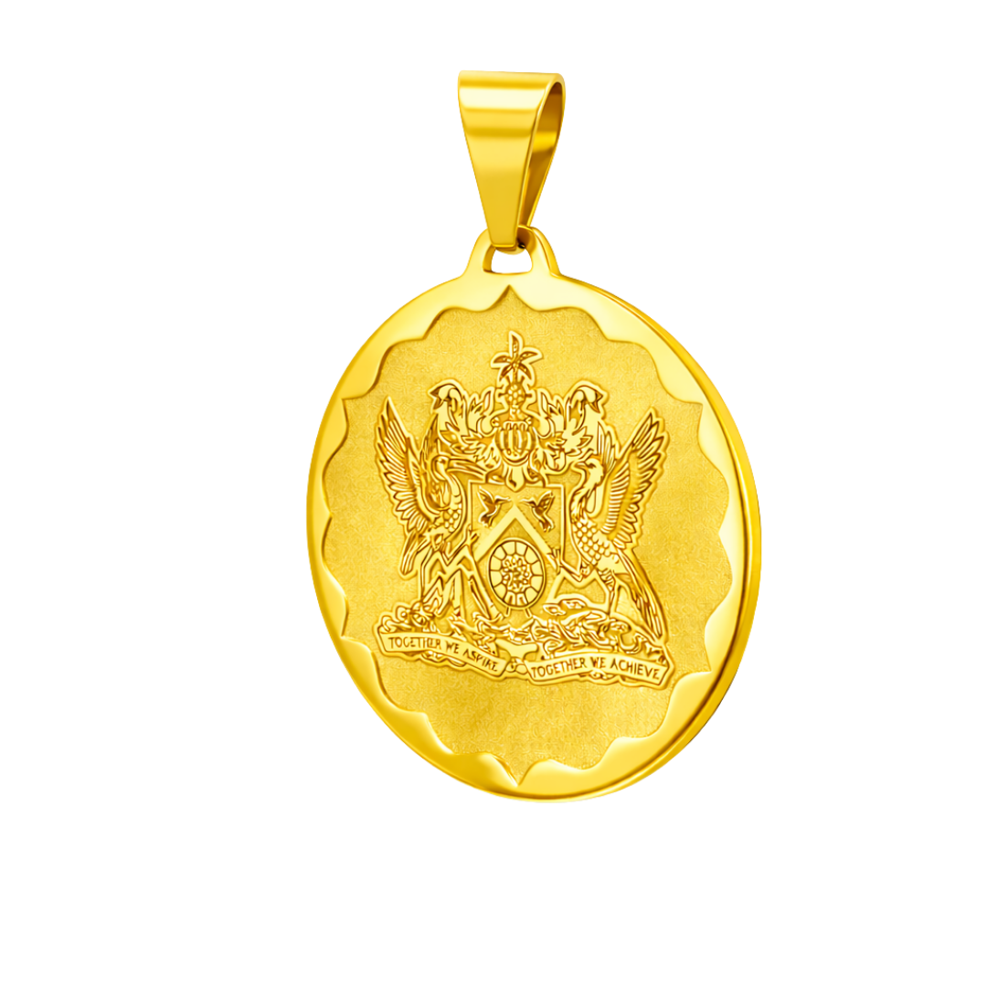 A powerful expression of national identity, the Coat of Arms Medallion Pendant is a refined tribute to Trinidad & Tobago’s heritage. Part of our Trinbago Treasures collection, this flat 2D medallion design is inspired by the official Coat of Arms, celebrating unity, strength, and cultural pride through bold yet elegant detailing.