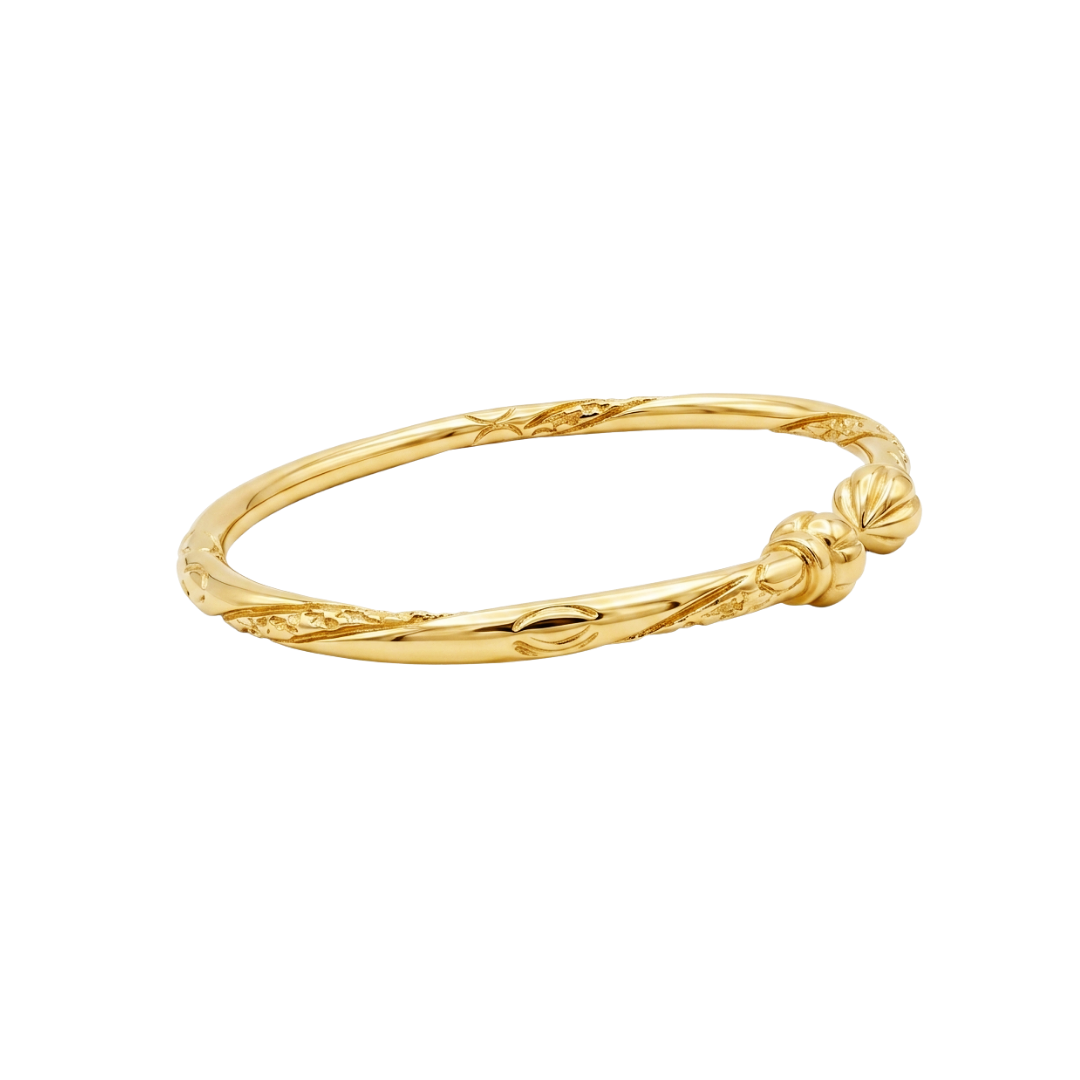 Handcrafted in solid 10K yellow gold at A96 Studio, the Cocoa Head Bracelet is carefully shaped and polished by skilled artisans to highlight the natural contours and distinctive texture of the cocoa pod motif.