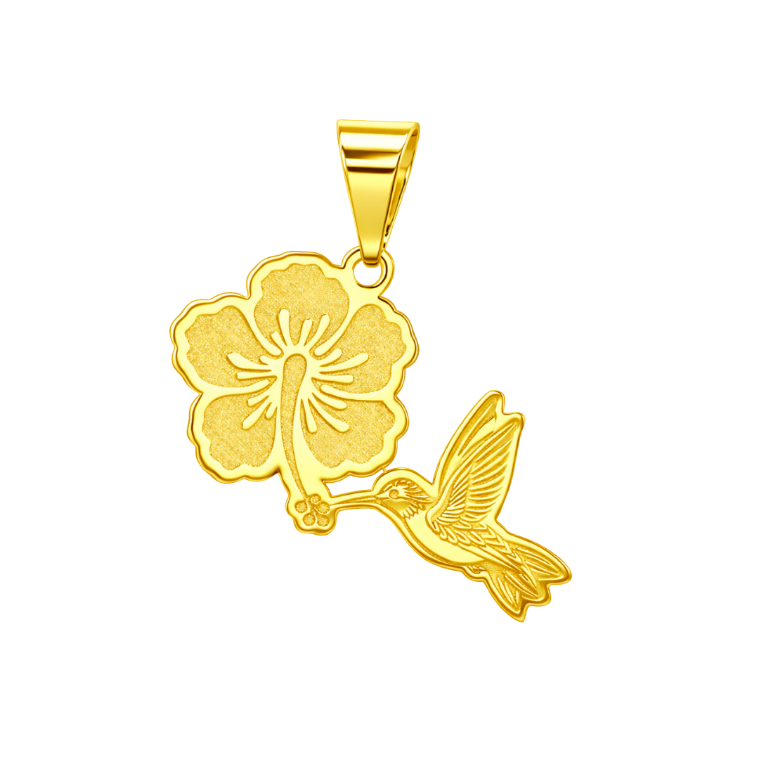 Evoke elegance with the Hummingbird Kiss Hibiscus Flower Pendant.Â
