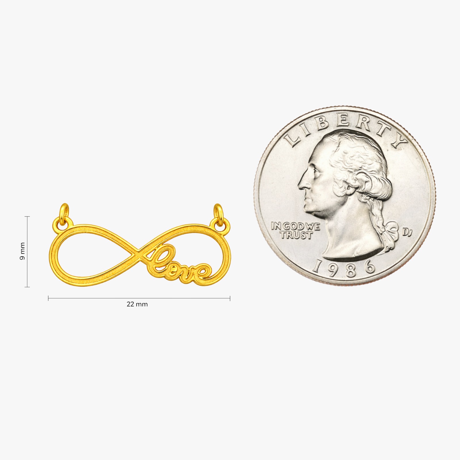 The design is elevated with a delicate “love” script seamlessly integrated into the loop, adding a romantic and personal touch. The combination of soft script detailing and the open infinity form creates a sense of movement and emotion—subtle yet impactful.