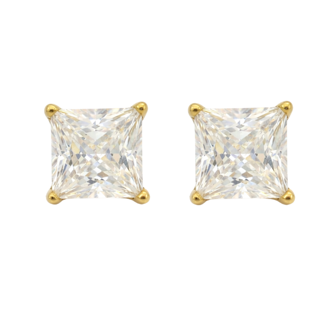 Timeless and refined, the Princess Cut CZ Stud Earrings are a classic essential designed for effortless elegance. Featuring a square-cut cubic zirconia stone, each stud delivers clean lines and brilliant sparkle that mimics the look of fine diamonds.