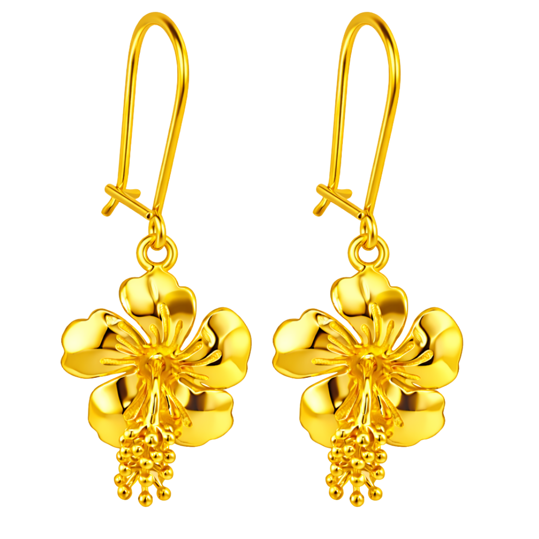Handcrafted in solid 10K yellow gold at A96 Studio, each earring is meticulously sculpted to highlight petal curvature, layered depth, and intricate floral detailing. Skilled artisans carefully refine every element of the hibiscus form before finishing the piece with a high-polish yellow gold shine that enhances its dimensional beauty.