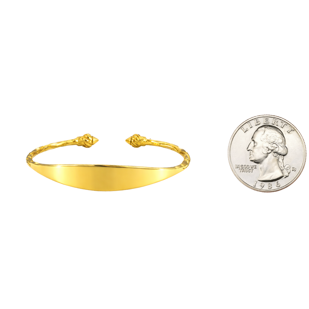 Handcrafted in solid 10K yellow gold, the Taj Hosay Head Baby ID Bracelet is carefully constructed with baby-safe proportions and smooth, rounded edges for comfortable everyday wear. Each detail is precisely finished to ensure durability while maintaining a lightweight feel suitable for little wrists.