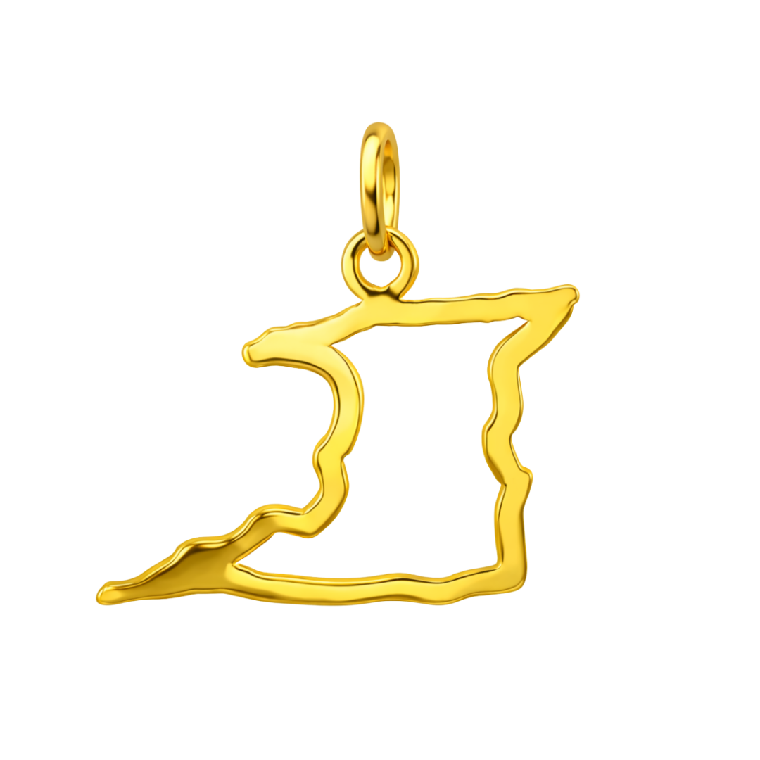 This charm features the distinctive outline of Trinidad rendered in a smooth, open 2D silhouette. The traced coastline emphasizes the island’s natural curves and contours, while the open center keeps the design lightweight and balanced. Polished gold edges define the shape with clarity, making this charm an effortless addition to bracelets, chains, or layered charm styles.