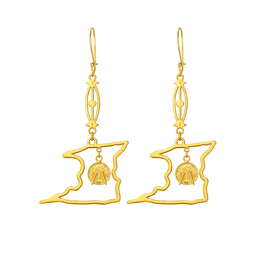 Inspired by the natural outline of Trinidad and the unmistakable rhythm of the steelpan, these long hanging earrings blend geography and culture into one expressive design. Each earring features a polished open-outline silhouette of the island, suspended below a refined elongated connector, with a delicately dangling steelpan charm at the center.